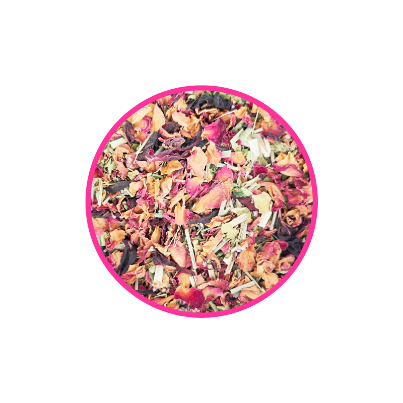 Ingrédients : Feuilles de moringa, pétales de rose, fleurs de bruyère, fleurs d'hibiscus, citronnelle, rooibos vert
